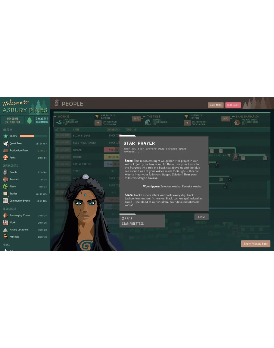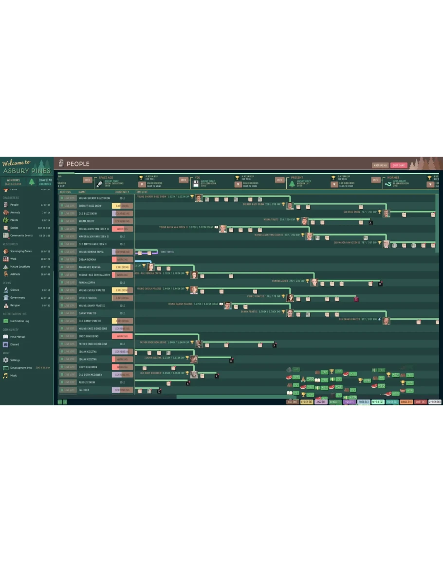 A grisly mystery in a small town unfolds across centuries through the stories of its residents. Orchestrate their work, grow resources, upgrade skills, and create automated production loops between past and future eras. All to uncover a sprawling secret embedded in the flow of time.