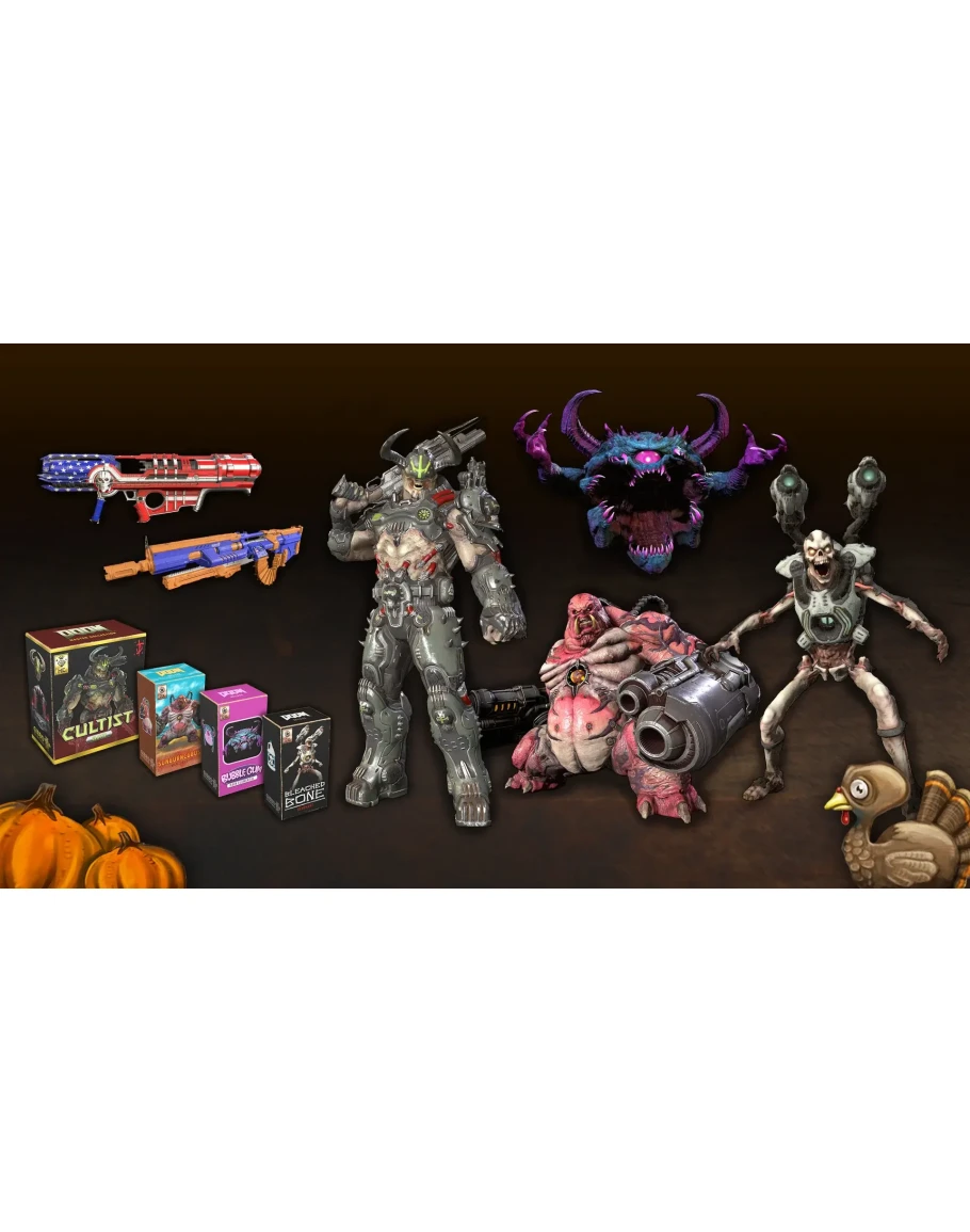 Пропустили седьмое событие «День благоубиения» в DOOM Eternal? Получите более 12 косметических предметов, в том числе все облики персонажей и расцветки оружия, анимацию, значки игрока и именные таблички. * Для этого набора требуется базовая игра DOOM Eternal.