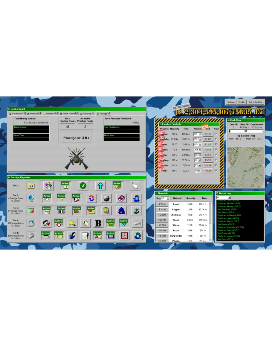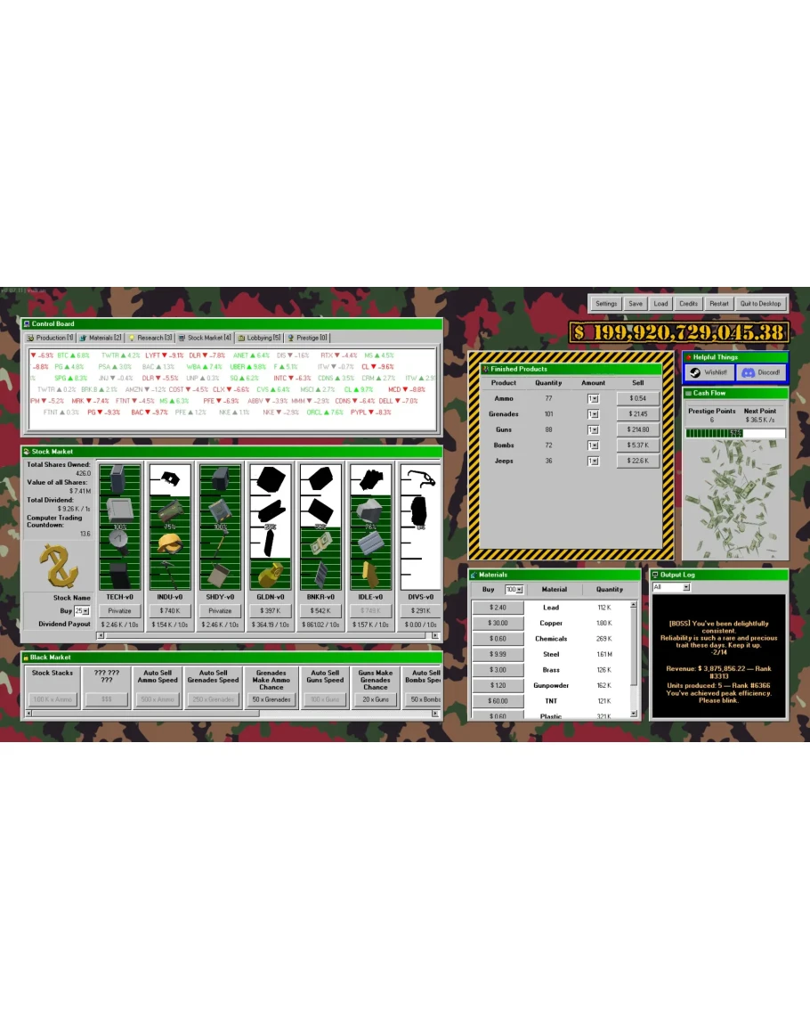 Это динамичная пошаговая игра, в которой вам предстоит заработать как можно больше денег, учредив предприятие военно-промышленного комплекса. Производите множество различного оружия, исследуйте улучшения, управляйте рынком акций и склоняйте правительство на свою сторону.