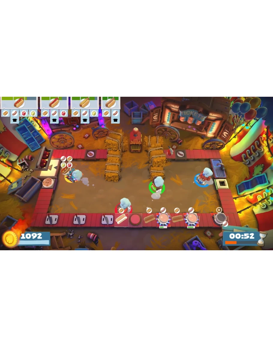«Overcooked! 2 Carnival of Chaos» приглашает принять участие в кооперативной игре, связанной с кулинарией и хаосом! Это новое красочное загружаемое дополнение испытает игроков, как только они возьмутся за комбинированные блюда и самое важное на кухне - пушки!