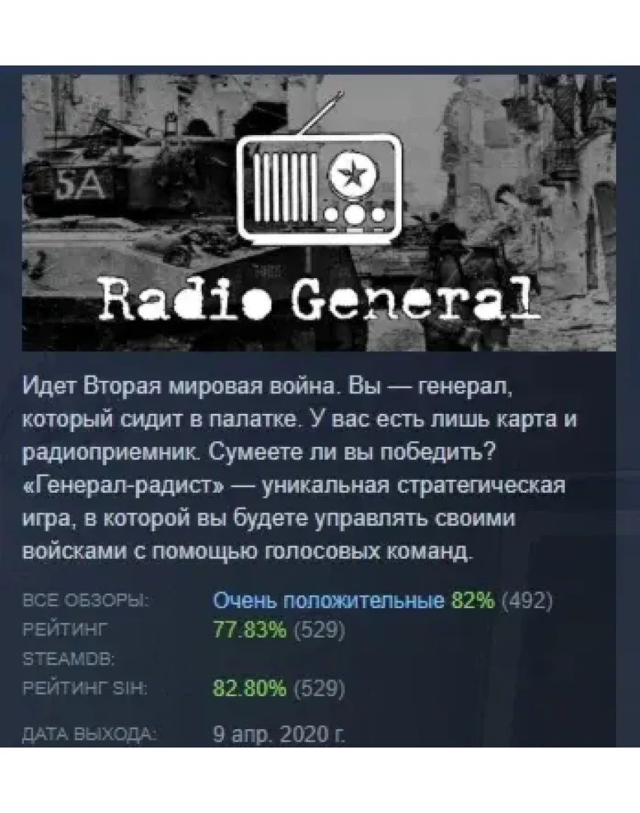 Идет Вторая мировая война. Вы — генерал, который сидит в палатке. У вас есть лишь карта и радиоприемник. Сумеете ли вы победить? «Генерал-радист» — уникальная стратегическая игра, в которой вы будете управлять своими войсками с помощью голосовых команд.