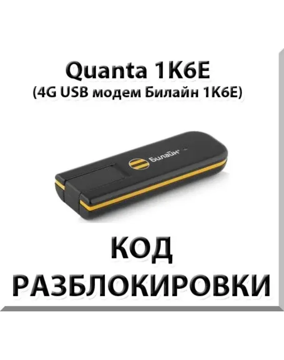 Данный товар предназначен для разблокировки 4G USB модема Quanta 1K6E (Билайн 1K6E). Разблокировка модема Quanta 1K6E осуществляется по IMEI с помощью уникального NCK кода полученного конкретно под Ваш модем. Покупатель получает NCK код, соответствующий его IMEI автоматически, сразу же после оплаты. Формат ответа содержит следующую информацию:
