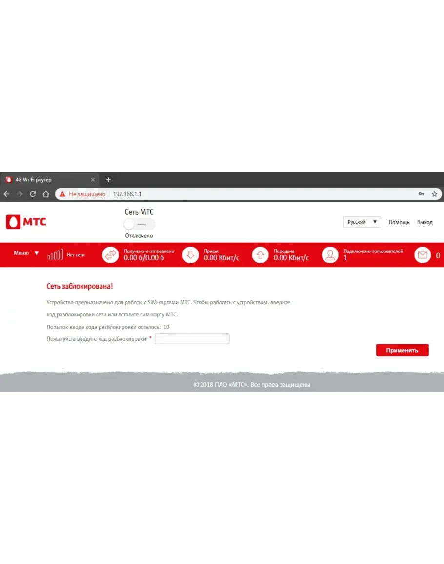 После ввода полученного кода разблокировки в веб-интерфейсе роутера - он начинает работать с SIM картами любых операторов.