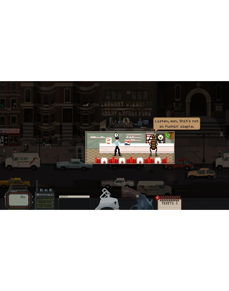 🌃Нью-Йорк — не город, а настоящий зверь. Исследуйте его темнейшие уголки и раскрывайте его секреты, играя за Джека Келли, бывшего детектива, на которого повесили убийство. Вы растоптаны и забыты прежними друзьями и у вас есть последний шанс разобраться в творящемся бардаке и раскрыть всю правду. При этом ваш новый босс не ставит вас и в грош, ваша жена — сосущее деньги исчадие ада, а местная мафия жаждет вашей крови. Можно смело сказать, что жизнь тут, в Бруклине, непроста. Да, и не забывайте выписывать штрафы нарушителям. В конце концов, вы — патрульный.