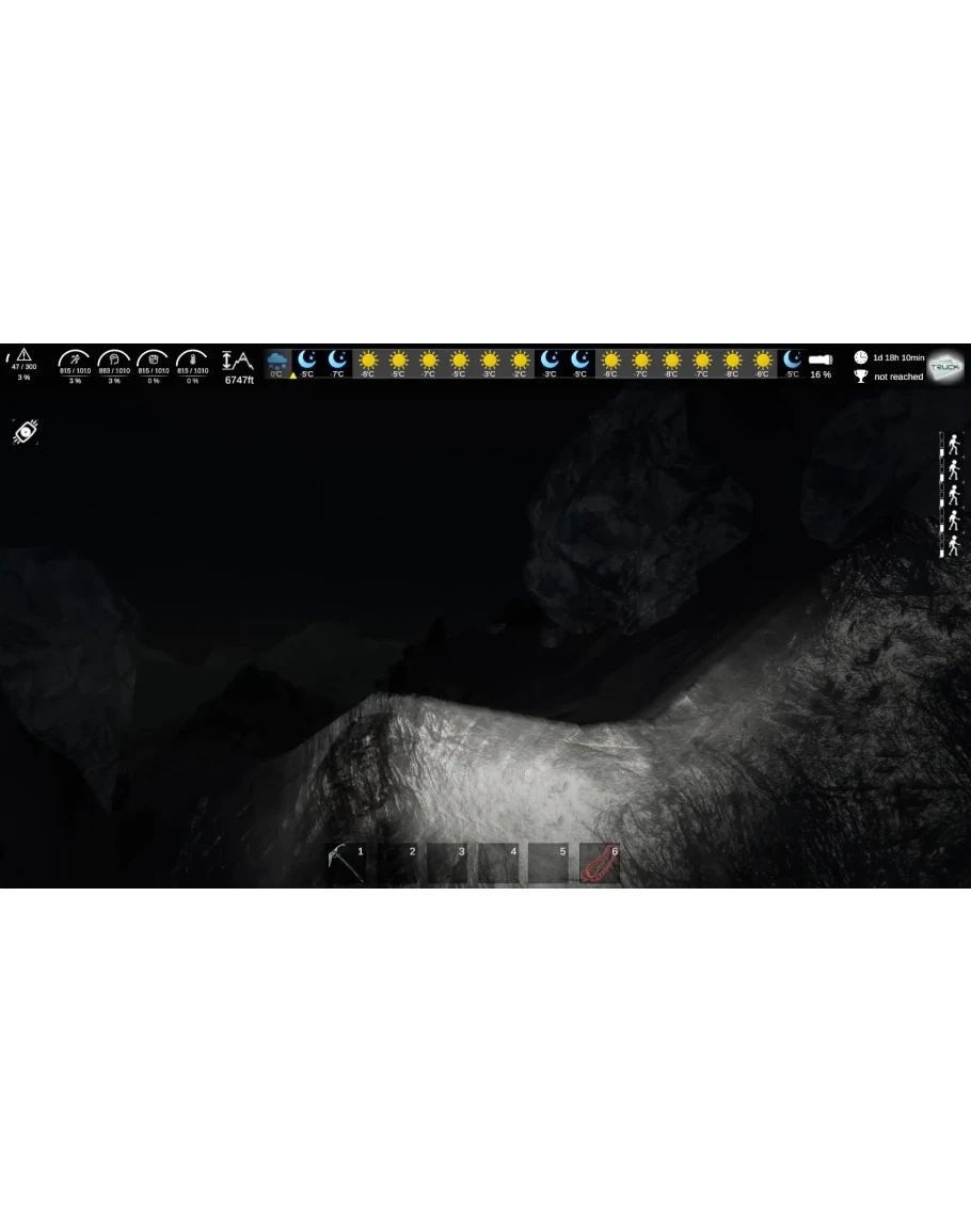 ❄️Игра-симулятор горной ходьбы, в которой вы становитесь зимним альпинистом. Для того чтобы достичь своей цели, необходимо четко спланировать экспедицию, правильно рассчитать свои силы и проявить настойчивость в преодоление таких преград как: снежная метель, низкая температура, ледяные разломы и лавины.