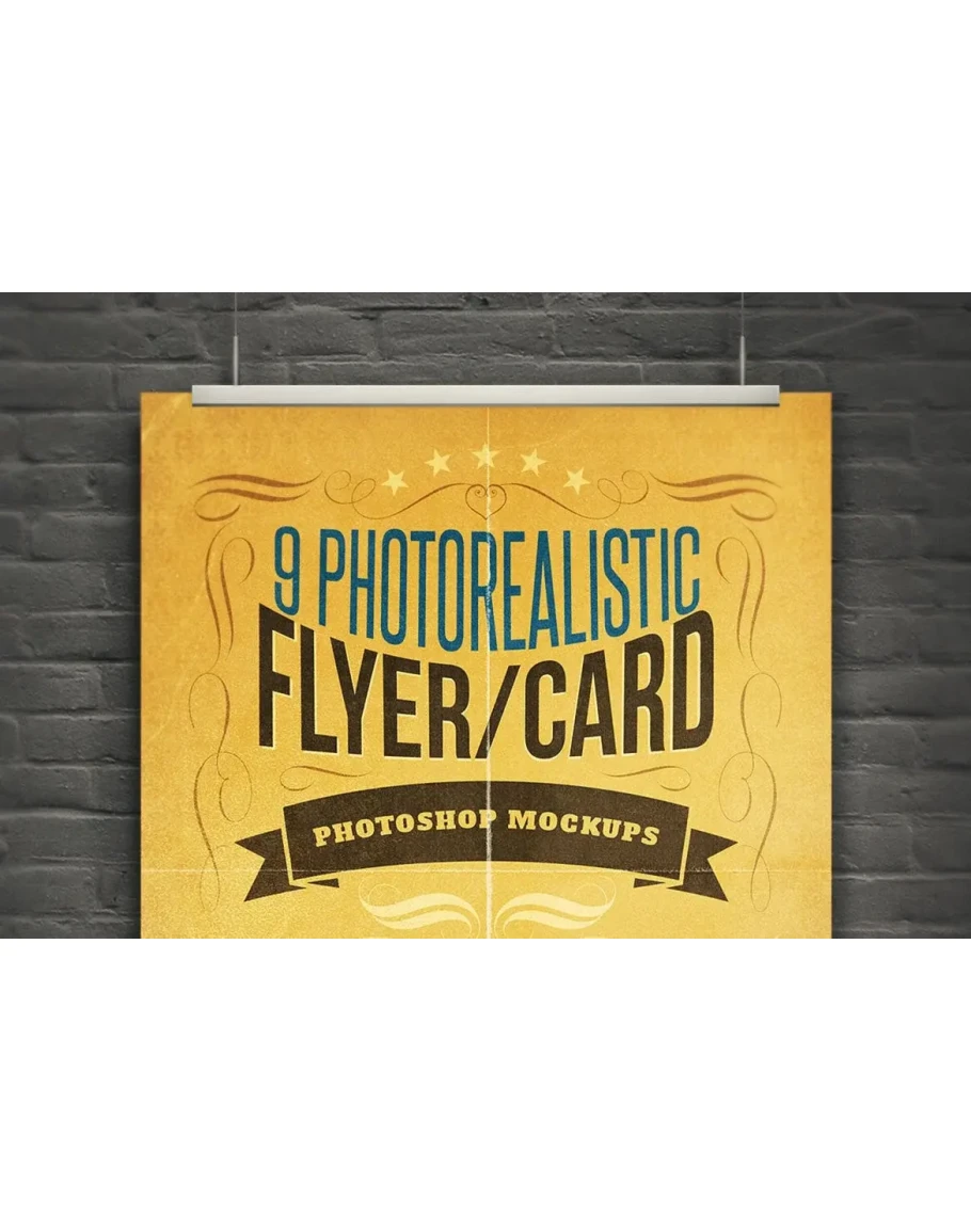 9 photorealistic flyer/card mockups. Great for presentation of your flyer, poster, advertisment, card or text. Very easy to use. Just few seconds and you’ll have realistic photo presentation. 9 styles included: - 3 front view mockups, 4 close-up views and 2 mockups for 2 flyers. 5x7, 4x6 and 8.5x11 ratios in this mockups. All mock-up templates are in Photoshop files with hi-res 2300×1600 pixels. Smart objects included to easy place your image. Realistic results in seconds!