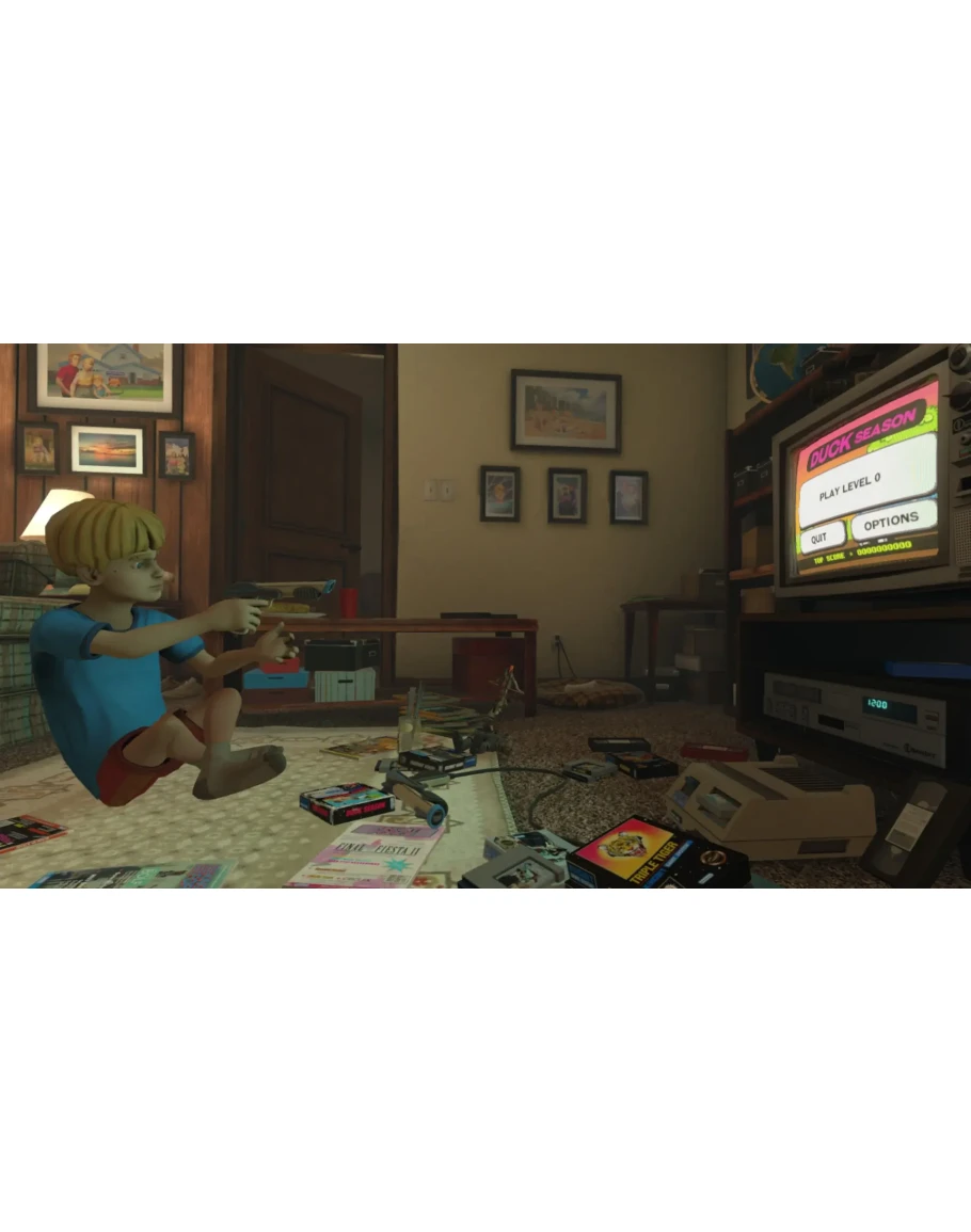 The game of your dreams just dropped, DUCK SEASON, a hunter with ridiculous graphics. Luckily, it's summer vacation and Mom just surprised you with a one day rental of it! Unfortunately, as you binge play it becomes apparent that all is not right with Duck Season...