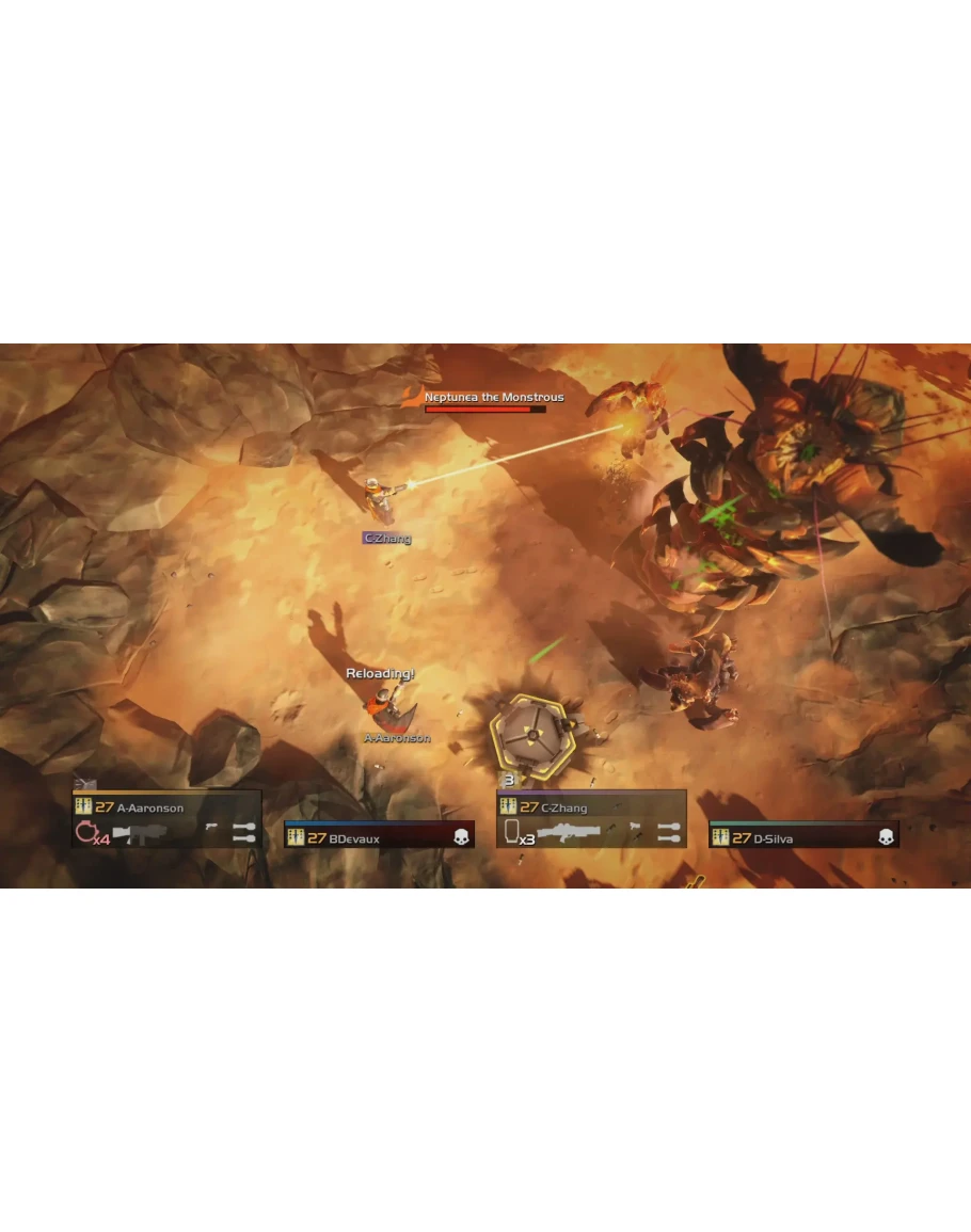 HELLDIVERS™ — это хардкорный, использующий оба мини-джойстика шутер для совместной игры. Игроки управляют Адскими Десантниками, элитными бойцами, вместе защищающими Супер-Землю и истребляющими врагов человечества в напряженной межгалактической войне.