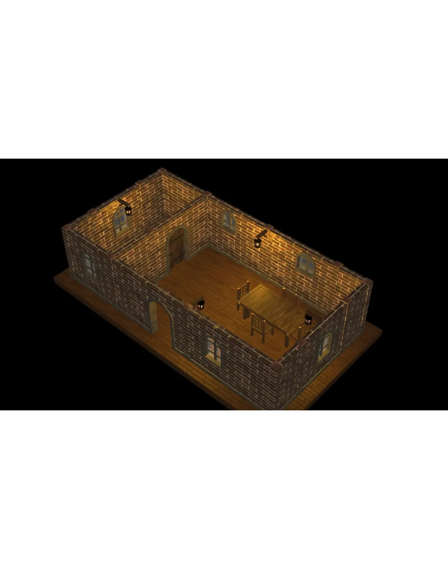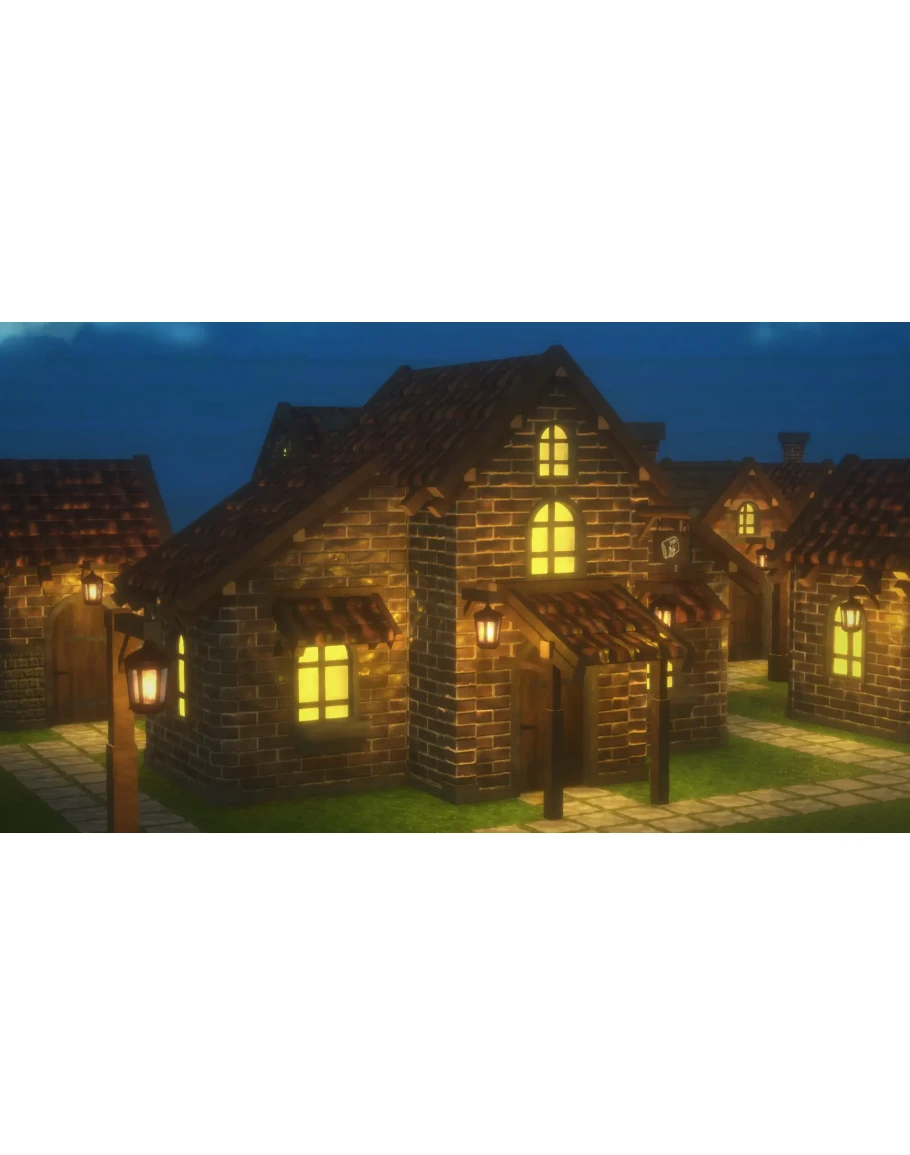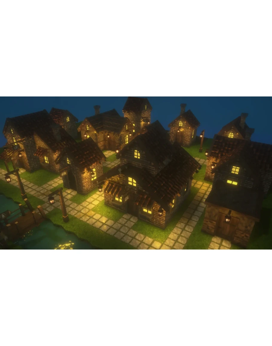 This pack allows you to create various medieval-style houses by combining many small parts such as walls, flooring, roof boards, and signboards. Pre-assembled stamps are also available for easy creation of buildings.