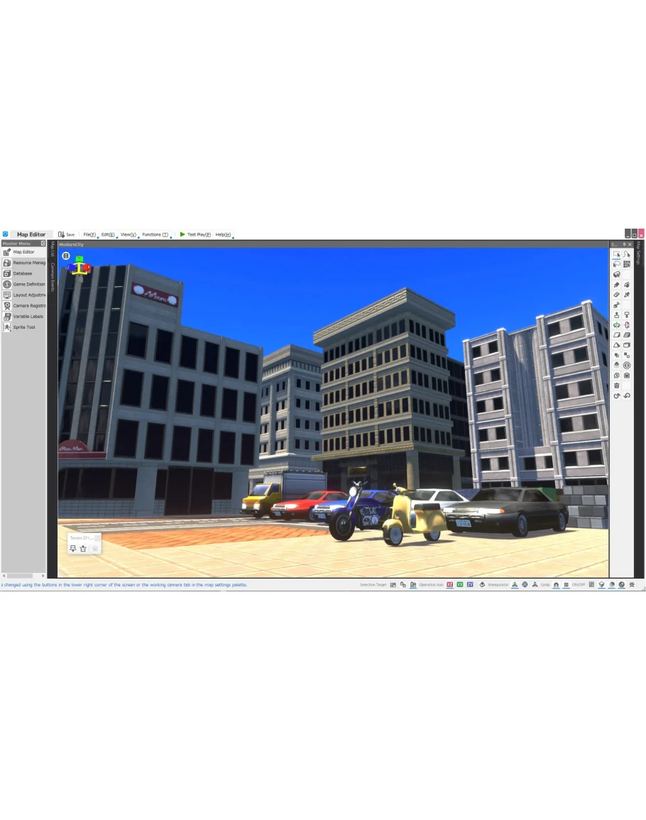 ModemCity Pack Vol. 1 is a 3D model resource pack containing modern city-inspired buildings, vehicles such as cars and motorcycles, and accessories such as traffic lights, crosswalks, and fences.