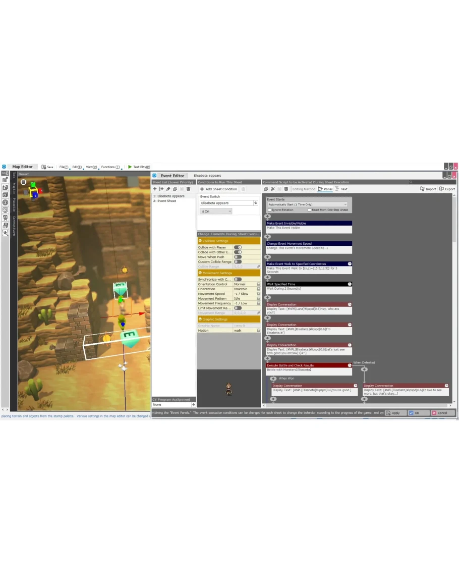Zero programming required! A tool for anyone to create RPGs! "RPG Developer Bakin" is a tool that makes it easy to create various types of RPGs, adventure games and action games without any programming knowledge.