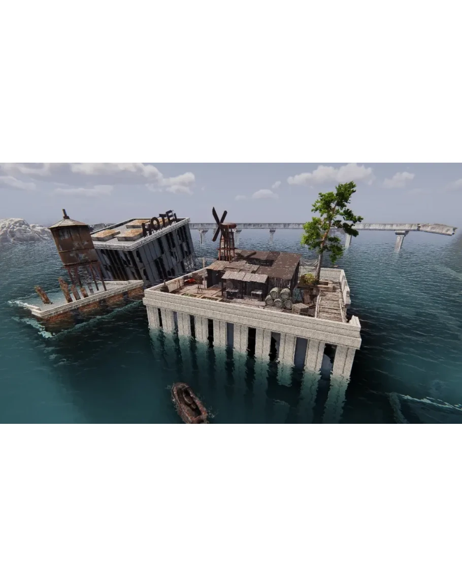 Приготовьтесь к игре в жанре выживания в стиле "Водный мир", с модульным строительством базы, поисковом затопленных городов, крафтом, защитой базы и нашествиями NPC-кланов ради ресурсов и территории. Готовы к водной апокалипсису?