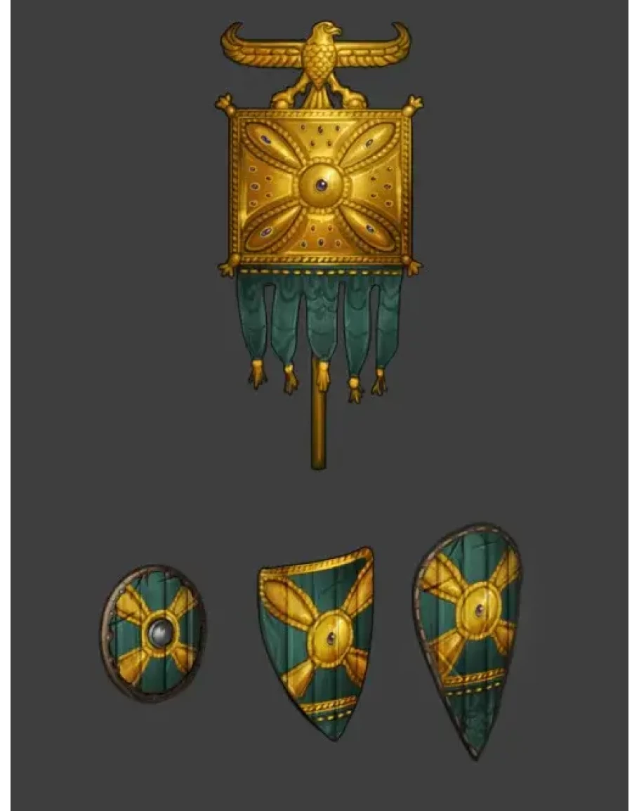 Now your company can boast a gilded banner and shields reflecting southern wealth and extravaganza!