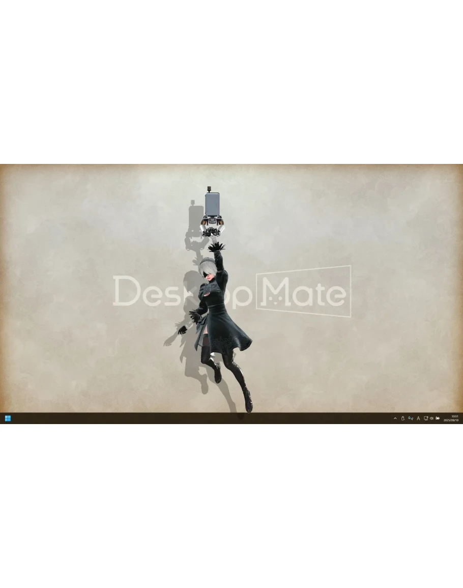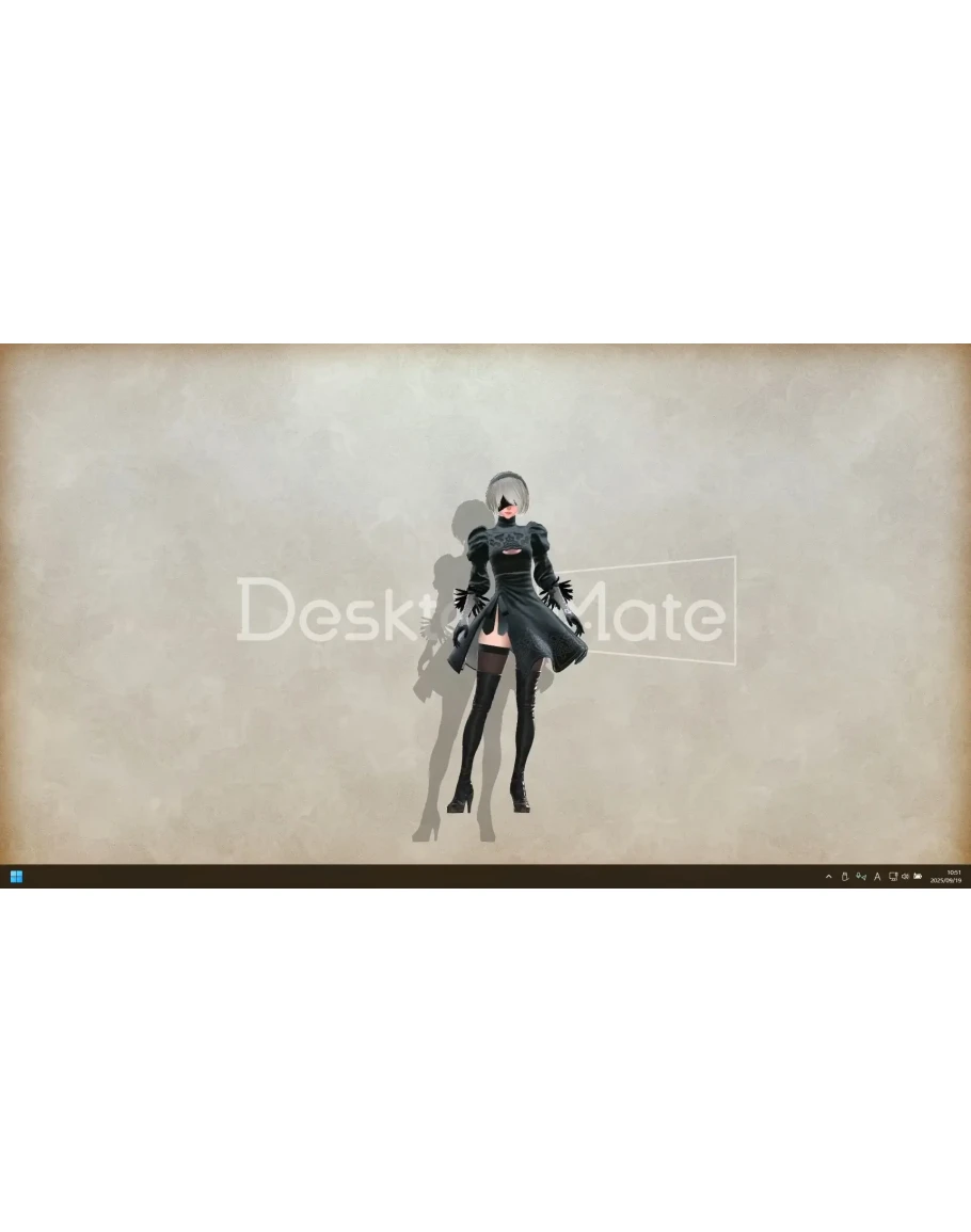The beloved protagonist of "NieR:Automata," 2B, is now available as a Desktop Mate! You can freely switch between Japanese and English voices and enjoy 2B's charm with voice lines extracted directly from the original game.