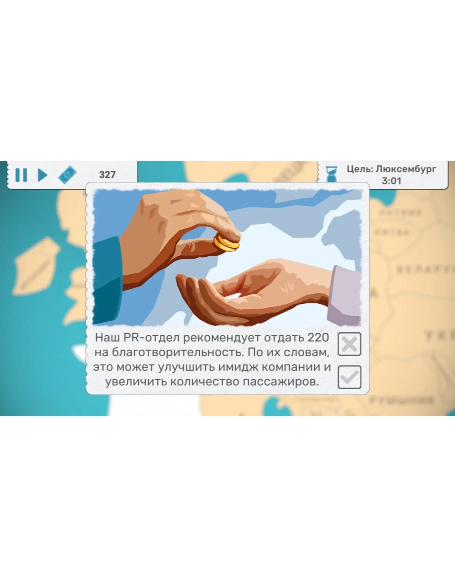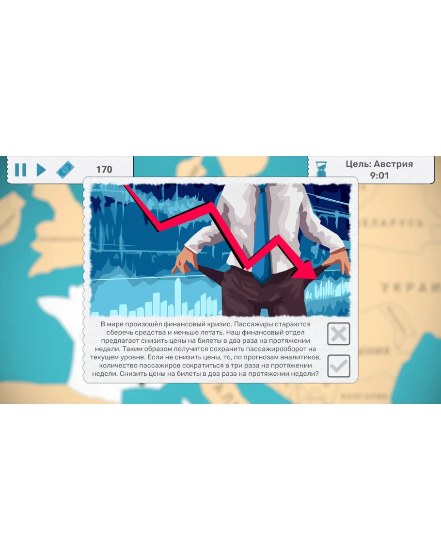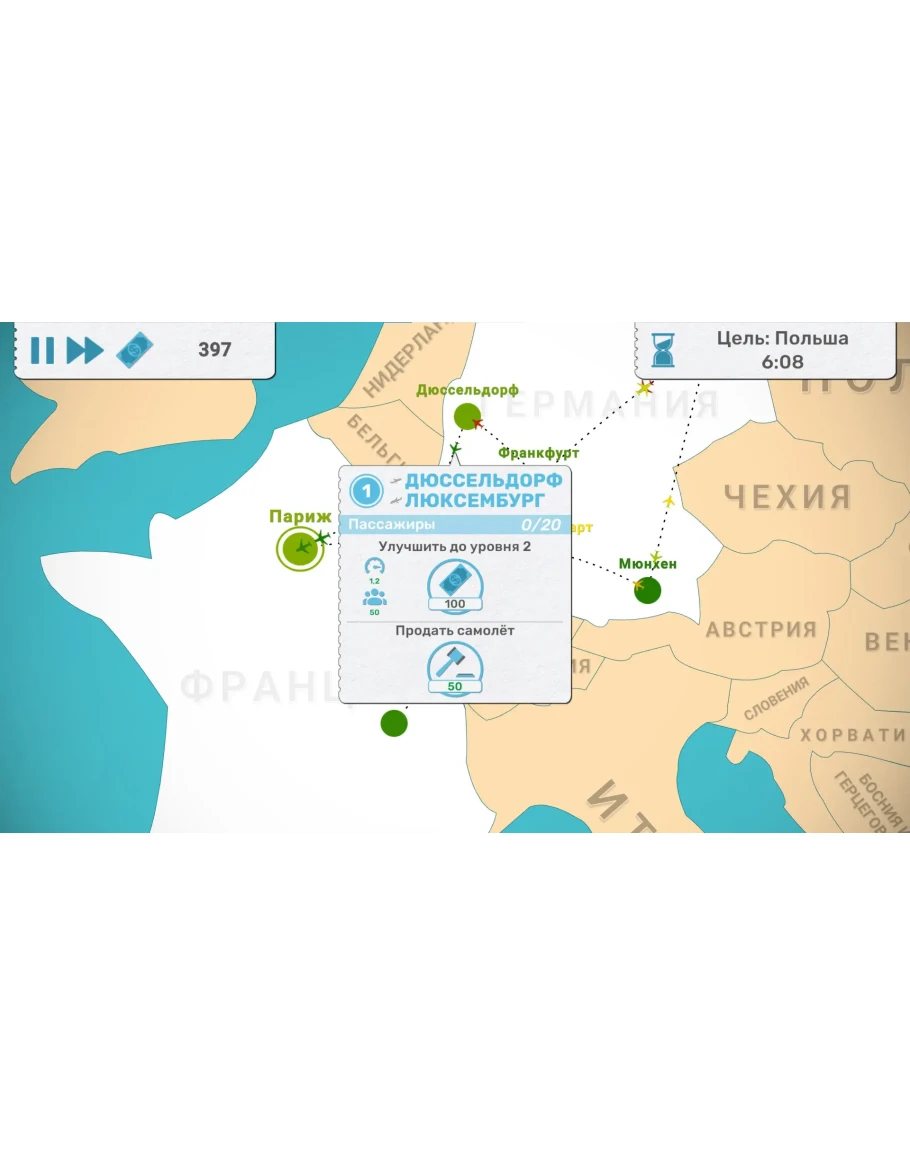 Развивайте свою авиационную транспортную сеть в разных городах и странах: стройте маршруты, запускайте новые самолёты, улучшайте самолеты и аэропорты!