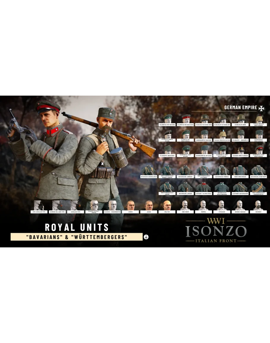 Набор Royal Units расширяет немецкую коалицию, предлагая отличительные униформы 2 главных земель Германского рейха: Баварии и Вюртемберга. В него входит 2 комплекта униформ для всех классов военных, а также специальная офицерская униформа.