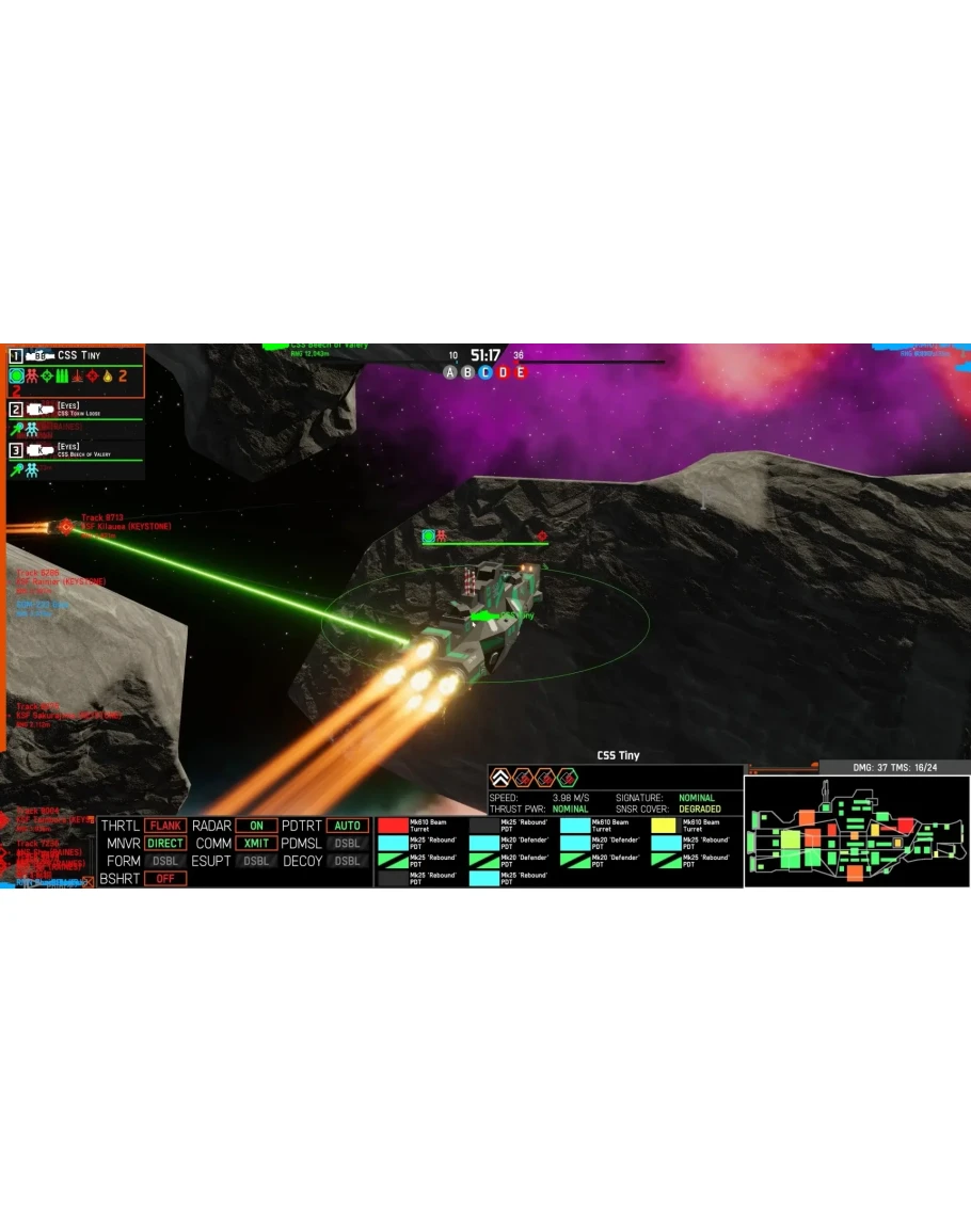 В этом уникальном сочетании тактической стратегии и космического симулятора вы командуете флотом, созданным вами вручную. Перехитрите врага, используя реалистичные радары, средства РЭБ, сложные маневры в 3D-пространстве и точное наведение на цель.