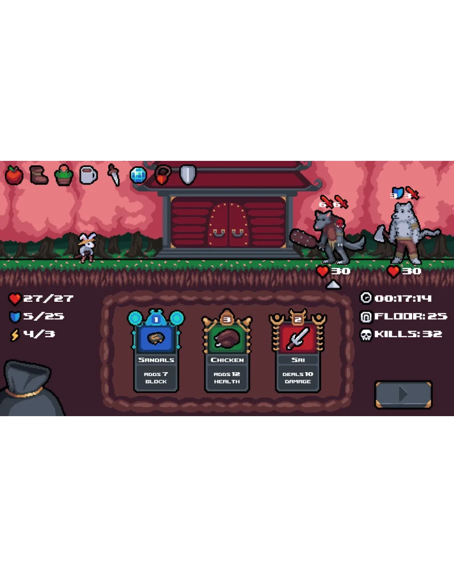 Rabbit Samurai — это пошаговая игра в жанре deck-building roguelike! Сражайтесь со злобными врагами, исследуйте разнообразные локации, собирайте уникальную колоду и усиливайте её с помощью могущественных реликвий! Никаких повторяющихся карт или забегов — в этой игре уникально всё!