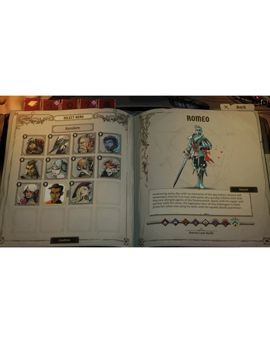 Откройте разблокируйте 6 эксклюзивных парных обликов для Ромео и Джульетты. Доступно в меню выбора героев.