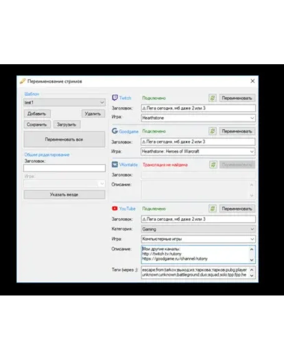 Преимуществом является то, что Вы редактируете описание всех трансляций в одном окне, без необходимости заходить на сами сайты.