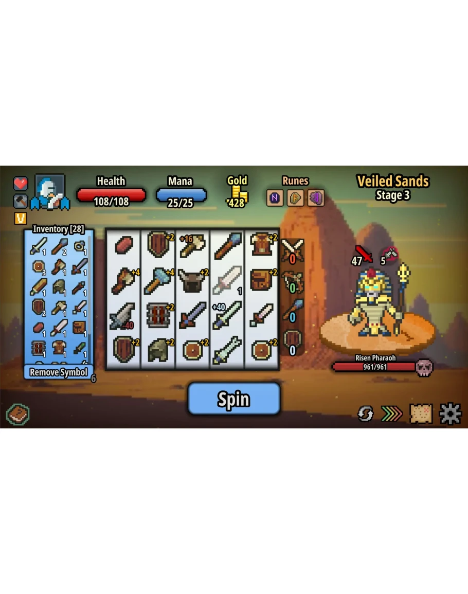 Spin Hero — рогалик, где вместо карт вам предстоит крутить барабаны. Собирайте инвентарь из мощных символов, развивайте стратегию, учитесь на собственных ошибках и открывайте новые возможности и комбинации.