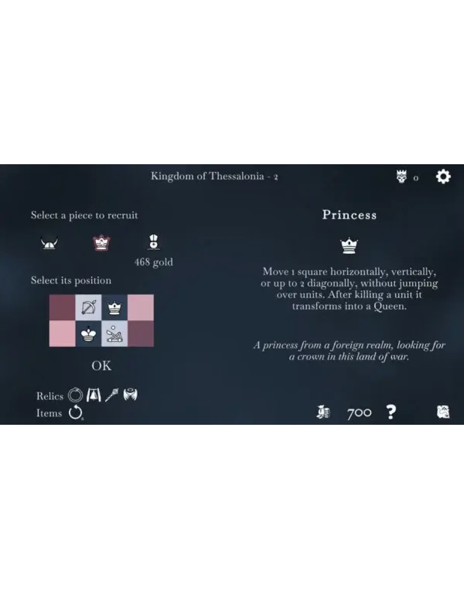 The Ouroboros King combines the tactical depth of chess with the build variety and replayability of roguelikes. Build a formidable army, discover powerful relics, and buy surprising gadgets to defeat the Covenant.