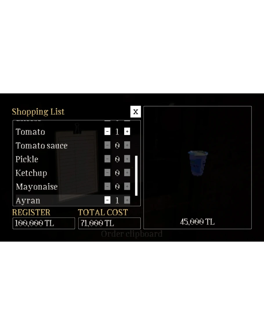 A slow-burn atmospheric horror game about managing a toast shop in a desolate location in Central Anatolia, Turkey. Make toasts for customers, cash in, buy more ingredients, and witness strange events unfolding.