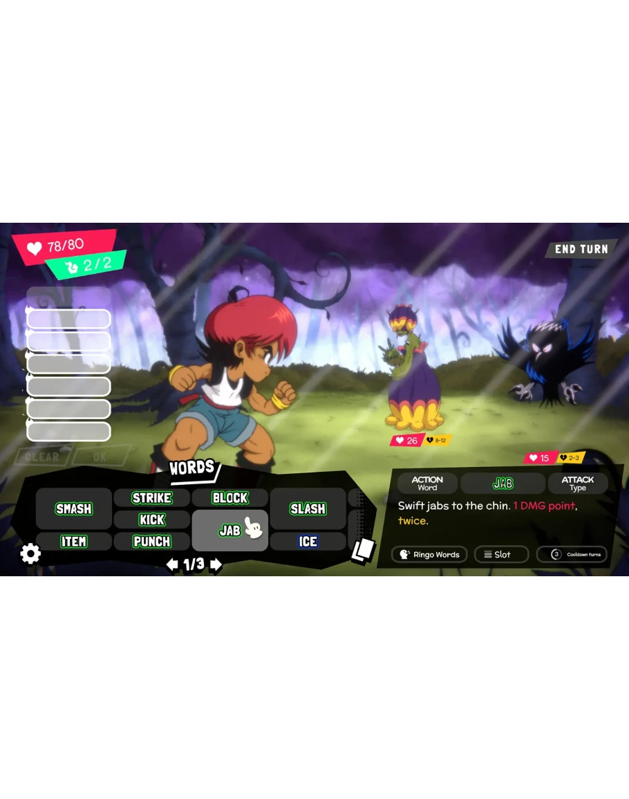 Unleash custom attacks by combining words in this Super! Anime! Turn-Based! RPG! Collect all 200 words, earn Pep Ups from honorable victories and become a Kiai master. Befriend your rivals, uncover dark mysteries, and seek out the pieces of the Wanderstar map in a wild race across the universe.