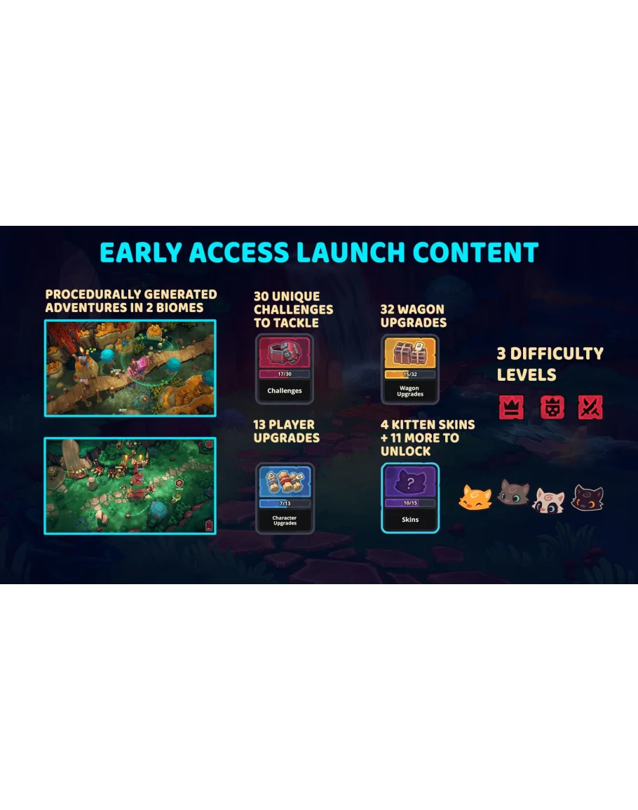 Wild Woods — экшн-игра про лесных существ. Сыграй на одном экране компанией до четырех человек и помоги отважным котикам защитить деревянный фургончик на пути через полный опасностей лес. Впереди куча препятствий, и без командной работы никак не обойтись!