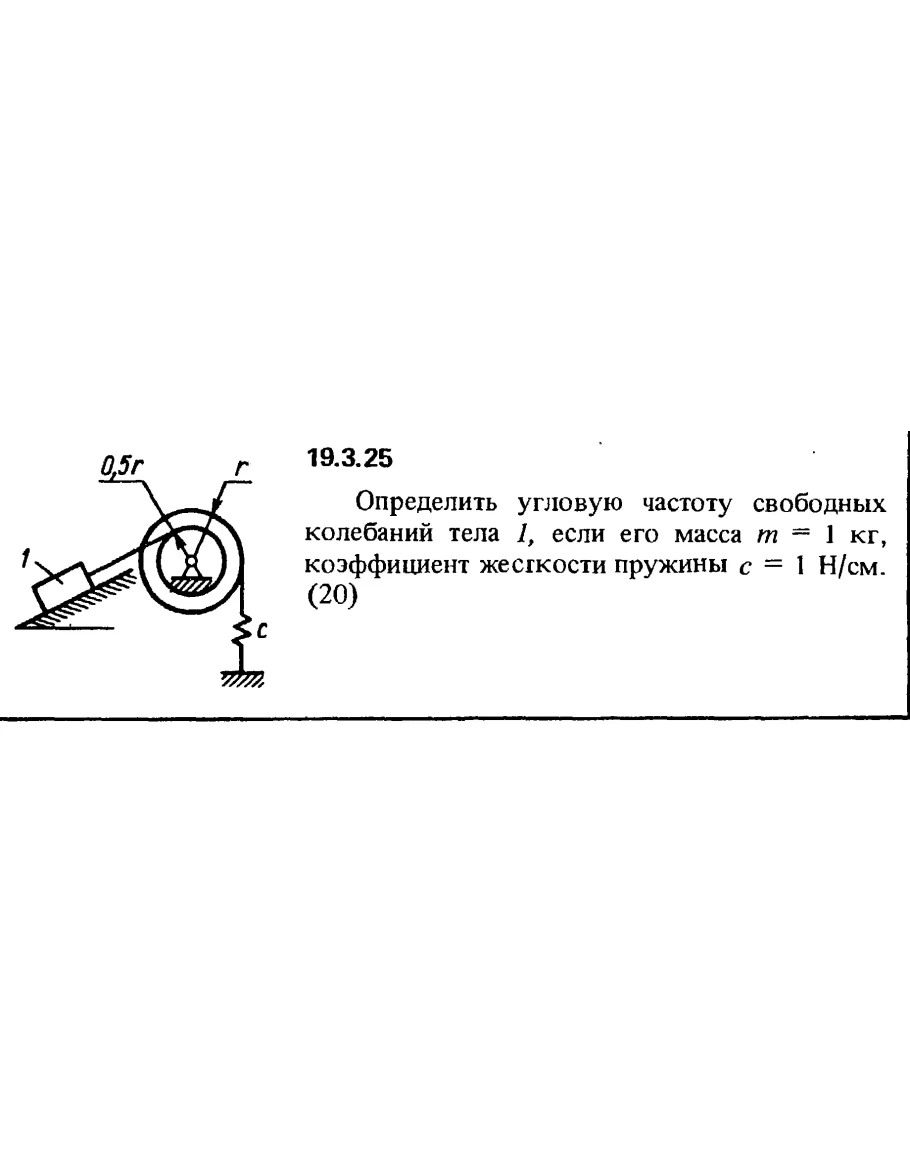 19.3.25. Определить угловую частоту свободных колебаний тела 1, если его масса m = 1 кг, коэффициент жесткости пружины с = 1 Н/см.