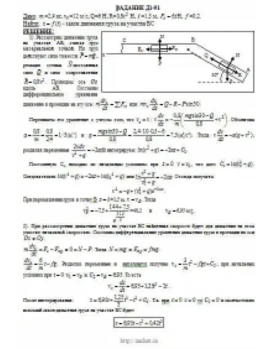 Решение Д1-91 (Рисунок Д1.9 условие 1 С.М. Тарг 1989 г)
