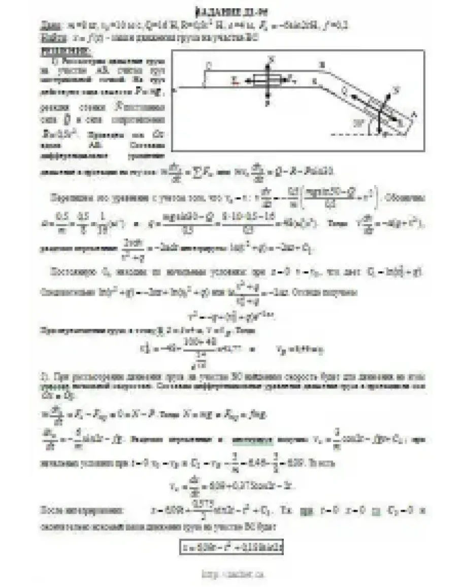 Решение Д1-95 (Рисунок Д1.9 условие 5 С.М. Тарг 1989 г)