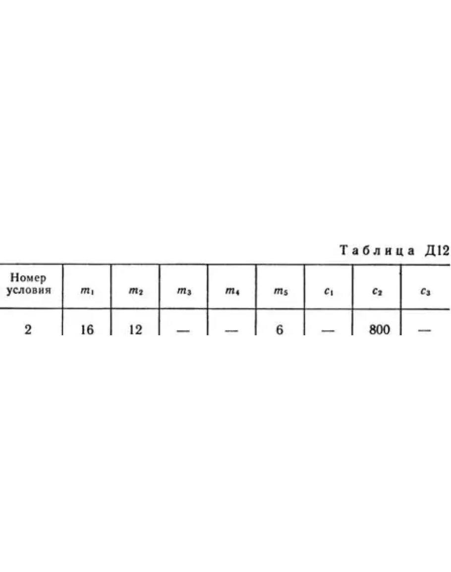 Механизм, расположенный в вертикальной плоскости (рис. Д12.0 — Д12.9), состоит из ступенчатых колес 1 и 2 с радиусами R1 = 0,4 м, r1 = 0,2 м, R2 = 0,5 м, r2 = 0,3 м, имеющих неподвижные оси вращения; однородного стержня 3 длиной l =1,2 м, закрепленного шарниром на одном из концов; грузов 4 и 5, подвешенных к нитям, намотанным на колеса. На стержне расстояние АВ = 2l/3. Стержень 3 соединен с колесом 2 невесомым стержнем 6. Колеса 1 и 2 или находятся в зацеплении (рис. 0—4), или соединены невесомым стержнем 7 (рис. 5—9). К колесам и стержню 3 прикреплены пружины. В табл. Д12 заданы массы mi тел (кг) и коэффициенты жесткости ci пружин (Н/м). Прочерки в столбцах таблицы означают, что соответствующие тела или пружины в систему не входят (на чертеже эти тела и пружины не изображать); в результате в каждом конкретном варианте получается довольно простой механизм, содержащий три или даже два тела. Стержень 6 или 7 входит в состав механизма, когда в него входят оба тела, соединенные этим стержнем. В положениях, изображенных на рисунках, механизм находится в равновесии. Определить частоту и период малых колебаний системы около положения равновесия. Найти также, чему равно статическое удлинение (сжатие) пружины λст в положении равновесия. При подсчетах считать колеса 1 и 2 сплошными однородными цилиндрами радиусов R1 и R2 соответственно. Рассмотрим два примера решения этой задачи.