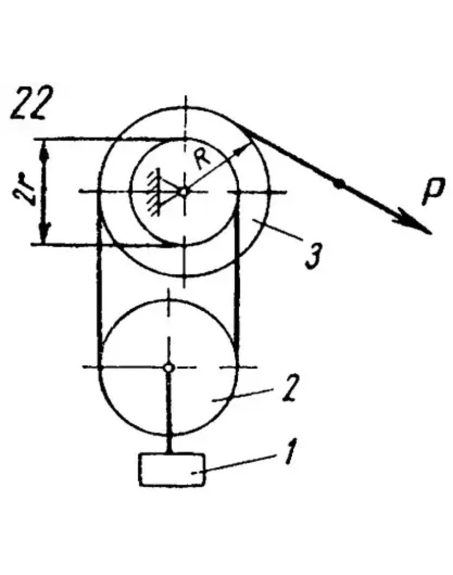 Для заданной механической системы определить ускорения грузов и натяжения в ветвях нитей, к которым прикреплены грузы. Массами нитей пренебречь. Трение качения и силы сопротивления в подшипниках не учитывать. Система движется из состояния покоя.