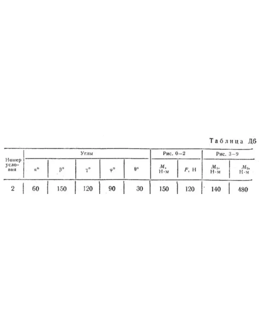 Механизм, расположенный в горизонтальной плоскости, находится в равновесии под действием приложенных сил: положение равновесия определяется углами α, β, γ, φ, θ (рис. Д6.0 — Д6.9, табл. Д6).