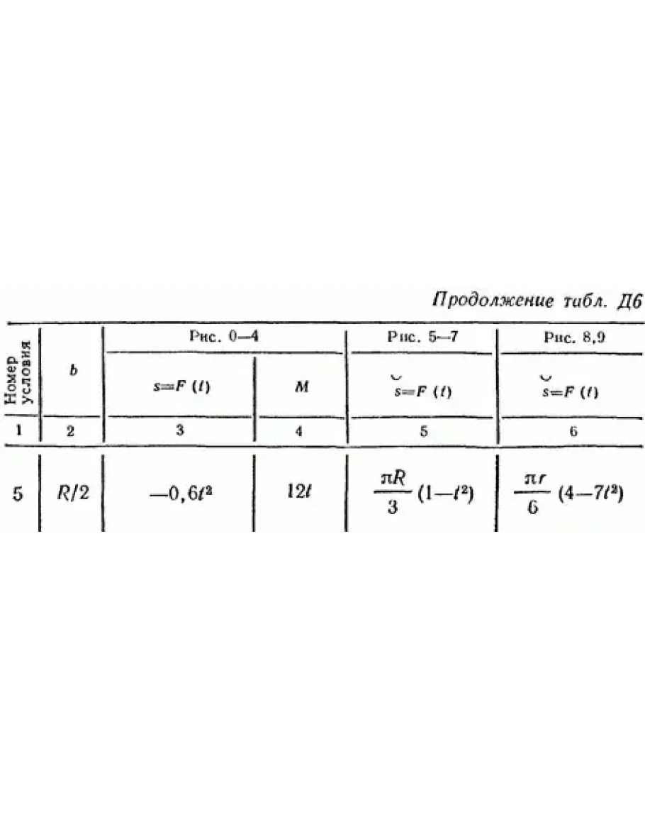Форма желоба на рис. 0—4 прямолинейная (желоб КЕ), на рис. 5, 6, 7 — окружность радиуса R (обод платформы), на рис. 8, 9 — окружность радиуса r = 0,5 R, На всех рисунках груз D показан в положении, при котором s>0 (когда s<0, груз находится по другую сторону от точки A); на рис. 5—9 расстояние s = AD отсчитывается по дуге окружности. Изображая чертеж решаемой задачи, провести ось z на заданном расстоянии ОС = Ь от центра С.