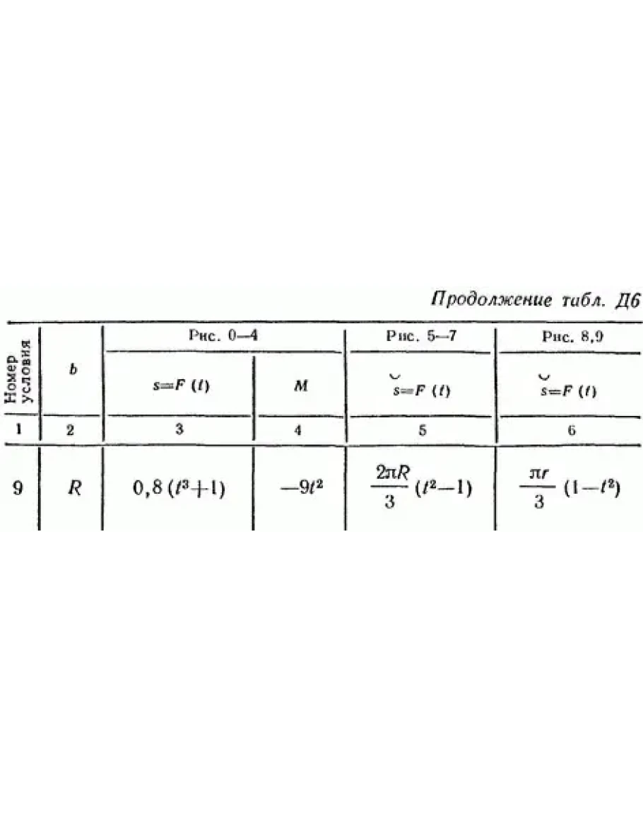 Форма желоба на рис. 0—4 прямолинейная (желоб КЕ), на рис. 5, 6, 7 — окружность радиуса R (обод платформы), на рис. 8, 9 — окружность радиуса r = 0,5 R, На всех рисунках груз D показан в положении, при котором s>0 (когда s<0, груз находится по другую сторону от точки A); на рис. 5—9 расстояние s = AD отсчитывается по дуге окружности. Изображая чертеж решаемой задачи, провести ось z на заданном расстоянии ОС = Ь от центра С.