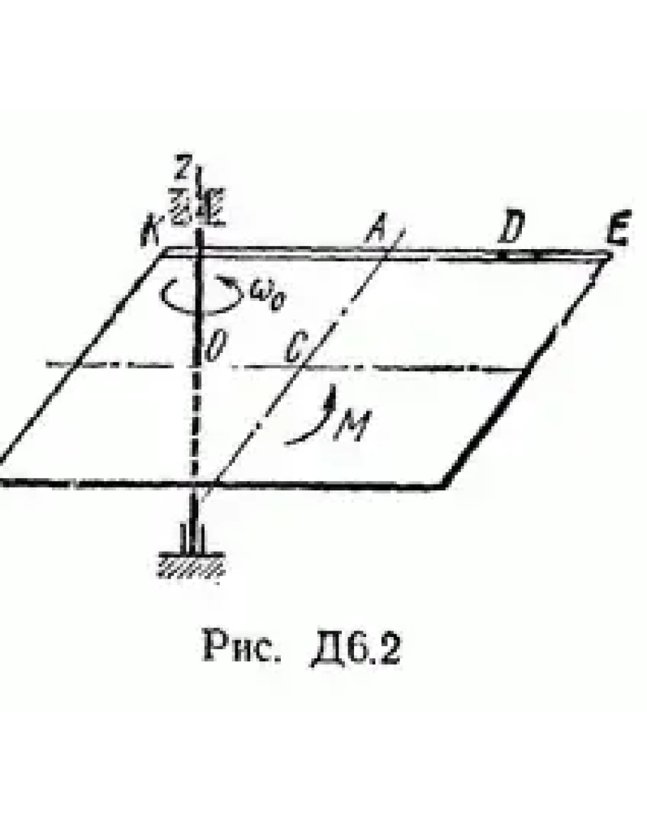 Однородная горизонтальная платформа (круглая радиуса R или прямоугольная со сторонами R и 2R, где R = 1,2 м) массой m1 = 24 кг вращается с угловой скоростью ω0 = 10 с-1 вокруг вертикальной оси z, отстоящей от центра масс C платформы на расстоянии OC = b (рис. Д6.0 —Д6.9, табл. Д6); размеры для всех прямоугольных платформ показаны на рис. Д6.0а (вид сверху).