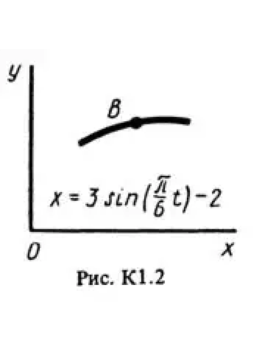 Точка B движется в плоскости xy (рис. К1.0-К1.9, табл. К1; траектория точки на рисунках показана условно). Закон движения точки задан уравнениями: x = f1(t), y = f2(t), где x и y выражены в сантиметрах, t – в секундах. Найти уравнение траектории; для момента времени t1 = 1 с определить скорость и ускорение точки, а также ее касательное ускорение и радиус кривизны в соответствующей точке траектории. Зависимость x = f1(t) указана непосредственно на рисунках, а зависимость y = f2(t) дана в табл. К1 (для рис. 0-2 в столбце 2, для рис. 3-6 в столбце 3, для рис. 7-9 в столбце 4).