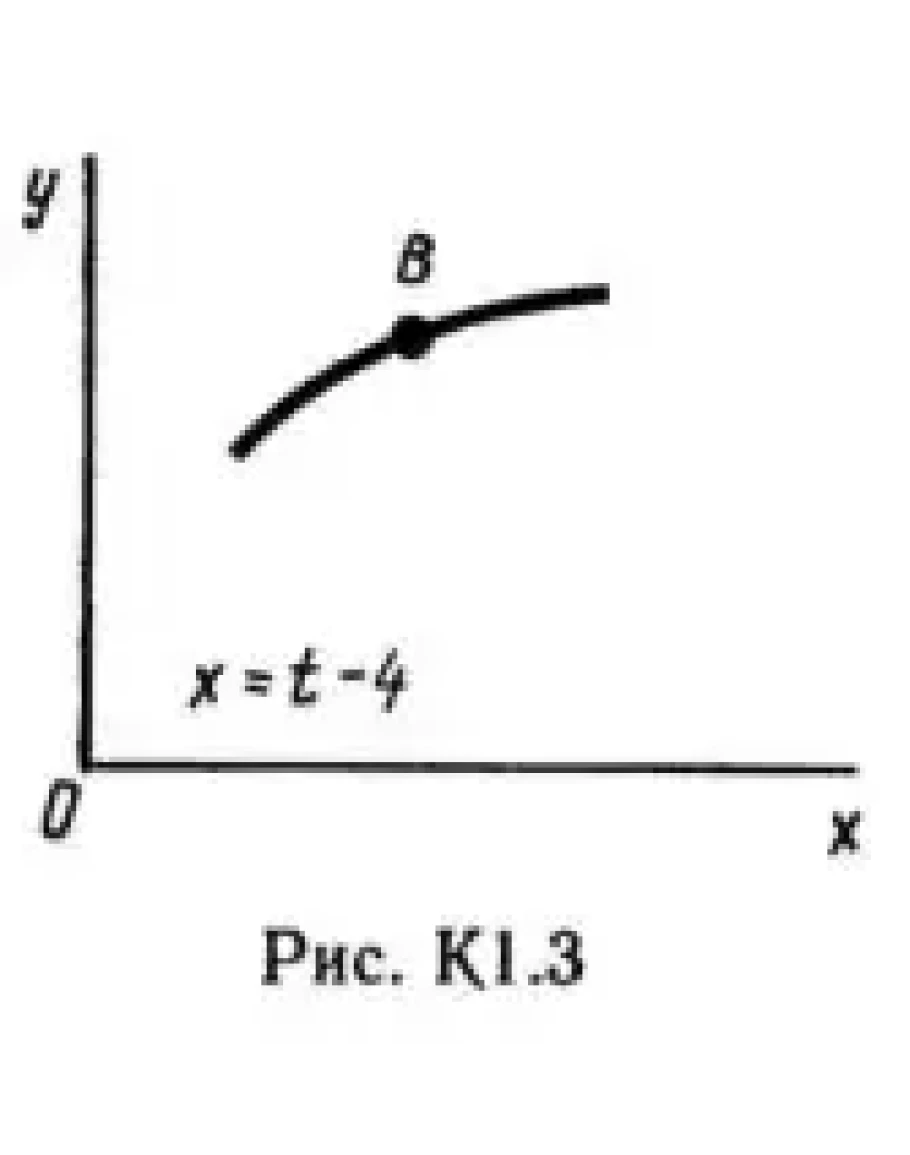 Под номером К1 помещены две задачи К1а и К1б, которые надо решить. Задача К1а. Точка В движется в плоскости xy (рис. К1.0 — К 1.9, табл. К1; траектория точки на рисунках показана условно). Закон движения точки задан уравнениями: x = f1(t), y = f2(t), где x и y выражены в сантиметрах, t — в секундах. Найти уравнение траектории точки; для момента времени t1 = 1 с определить скорость и ускорение точки, а также ее касательное и нормальное ускорения и радиус кривизны в соответствующей точке траектории. Зависимость x = f1(t) указана непосредственно на рисунках, а зависимость y = f2(t) дана в табл. K1 (для рис. 0—2 в столбце 2, для рис. 3—6 в столбце 3, для рис. 7—9 в столбце 4). Как и в задачах С1 — С4, номер рисунка выбирается по предпоследней цифре шифра, а номер условия в табл. К1 — по последней. Задача К1б. Точка движется по дуге окружности радиуса R = 2 м по закону s = f(t), заданному в табл. К1 в столбце 5 (s — в метрах, t — в секундах), где s =AM — расстояние точки от некоторого начала A, измеренное вдоль дуги окружности. Определить скорость и ускорение точки в момент времени t1 = 1 с. Изобразить на рисунке векторы v и a, считая, что точка в этот момент находится в положении M, а положительное направление отсчета s — от А к М.