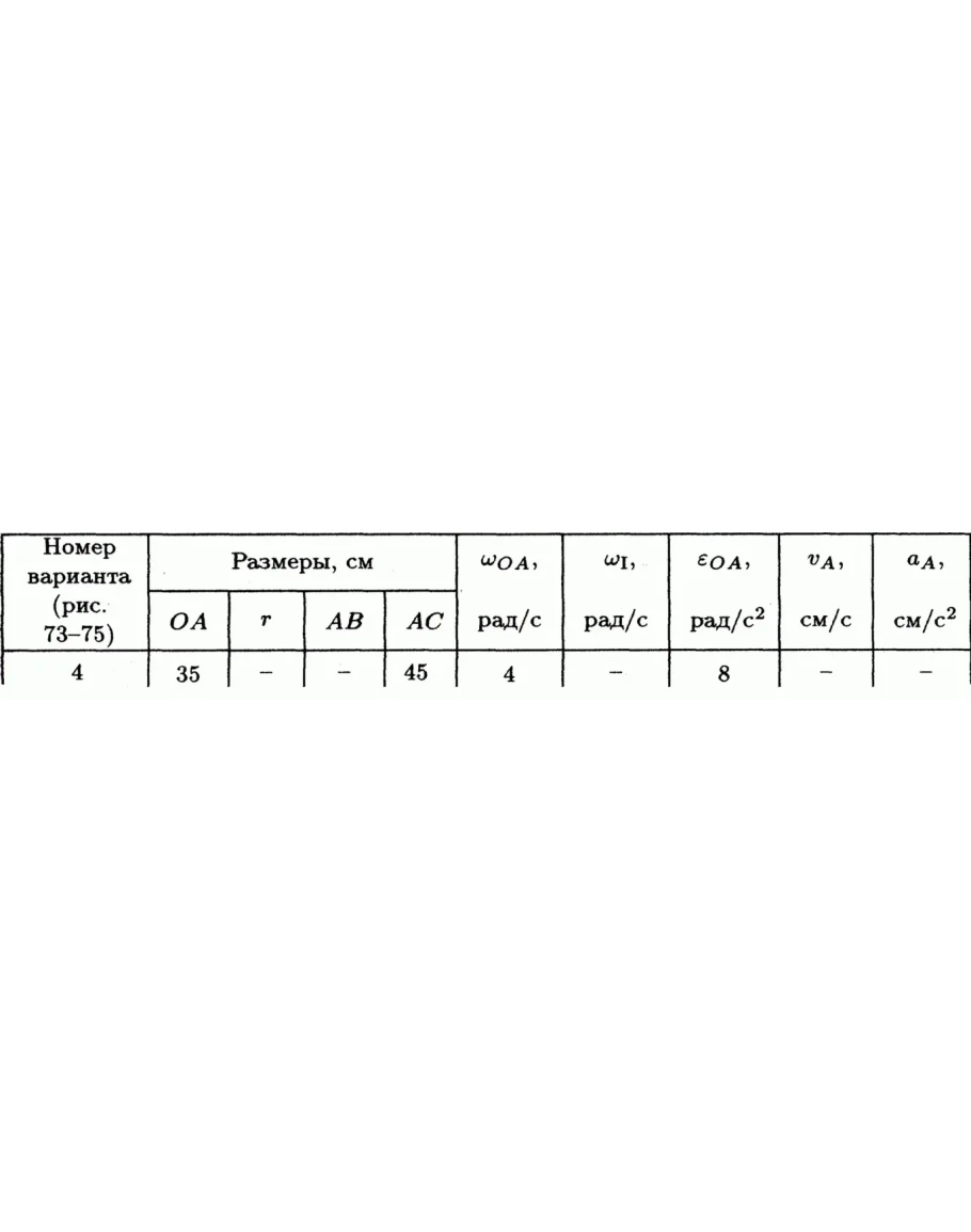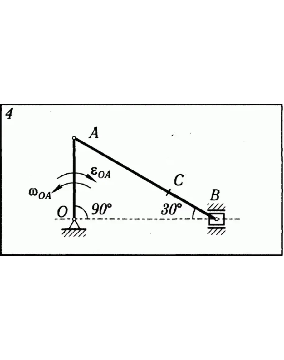 Решение задачи К5 Вариант 4 из решебника по теоретической механике Яблонский А.А. 1978 г., на тему: К5 Определение скоростей и ускорении точек твердого тела при плоском движении (стр. 99).