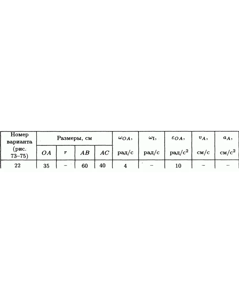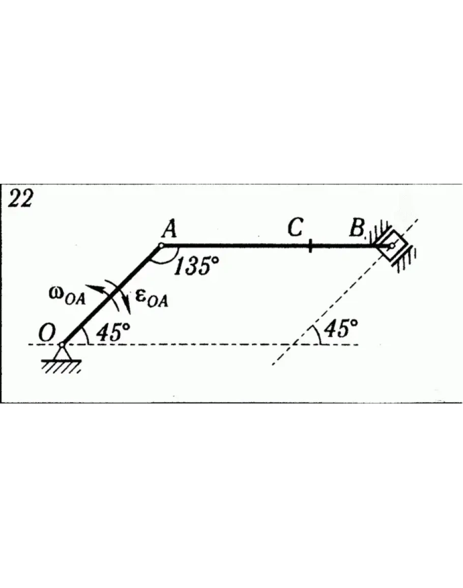 Решение задачи К5 Вариант 22 из решебника по теоретической механике Яблонский А.А. 1978 г., на тему: К5 Определение скоростей и ускорении точек твердого тела при плоском движении (стр. 99).
