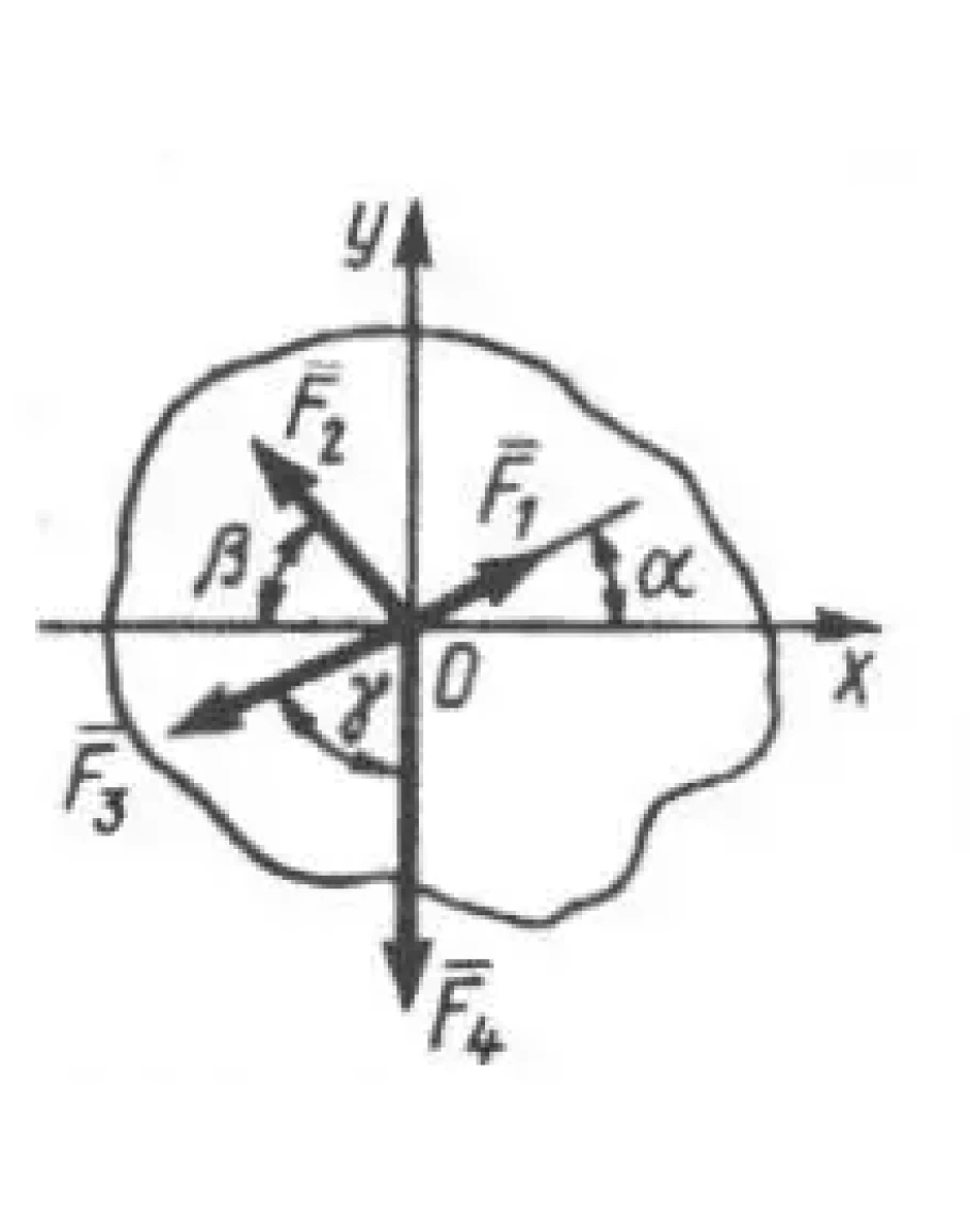 На твердое тело в точке О действует плоская система сходящихся сил F1=1H, F2=2H,