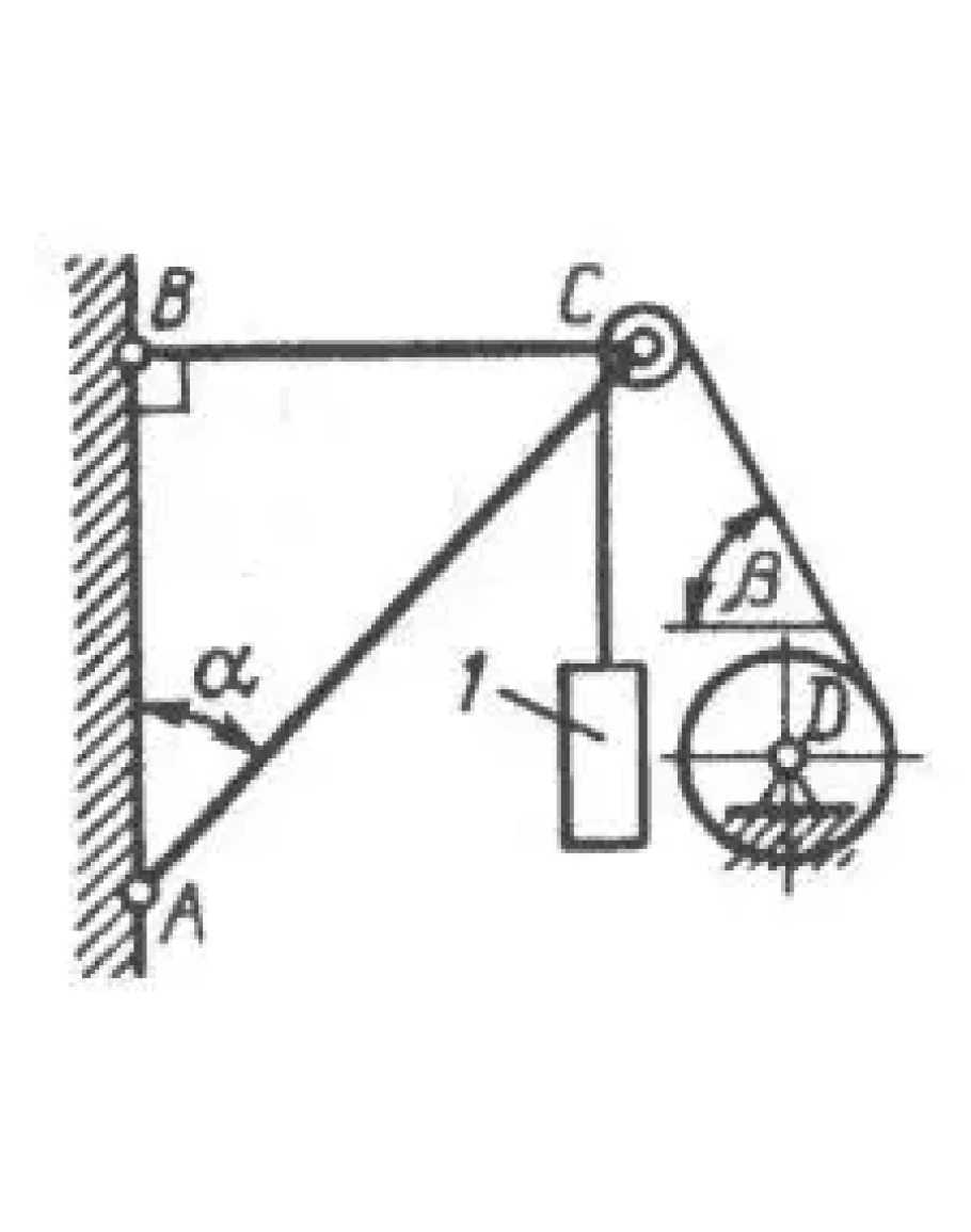 ного на барабан лебедки D. Определить усилие в стержне АС, если углы ?= 45°, ?= 60°. (Ответ -26,4)