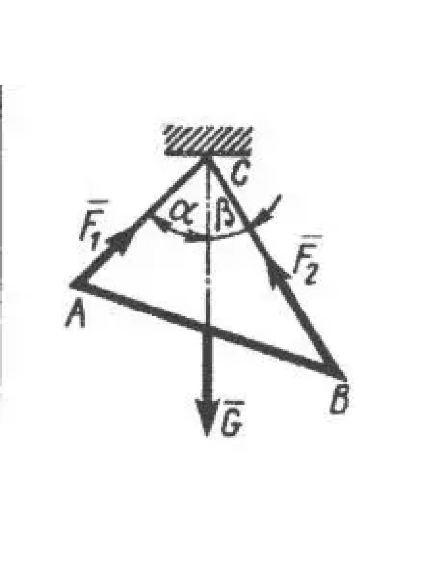 Заданы углы ?=45о и ?=30о между вертикалью и веревками AC и BC соответственно.
