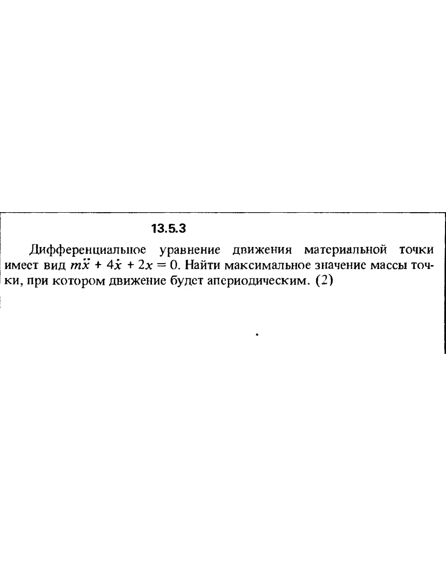 13.5.3. Дифференциальное уравнение движения материальной точки имеет вид mх + 4х + 2х = 0. Найти максимальное значение массы точки, при котором движение будет апериодическим.