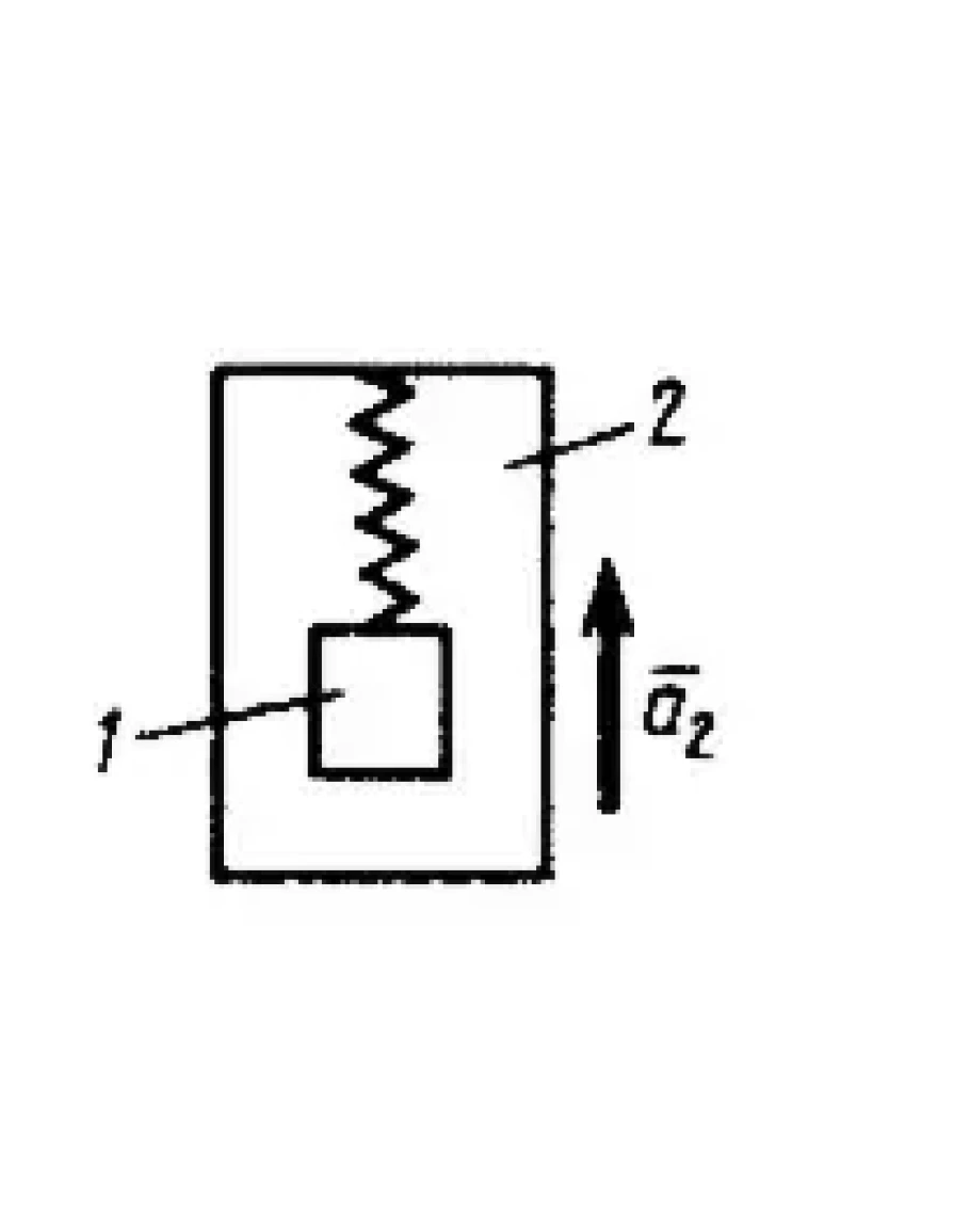 Кабина 2 лифта движется вверх с ускорением а2 = 0,5g. Определить силу натяжения пружины, если подвешенный груз 1 весом 100Н находится в состоянии относительною покоя. (Ответ 150)