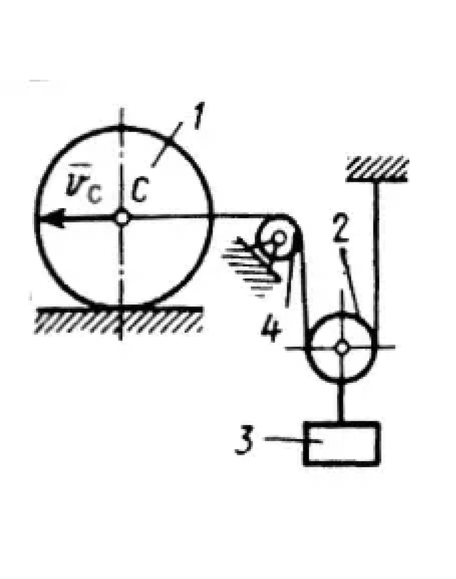 цилиндра 1 движется со скоростью vc = 4 м/с, а массы тел 1, 2 и 3 равны соответственно m1 =