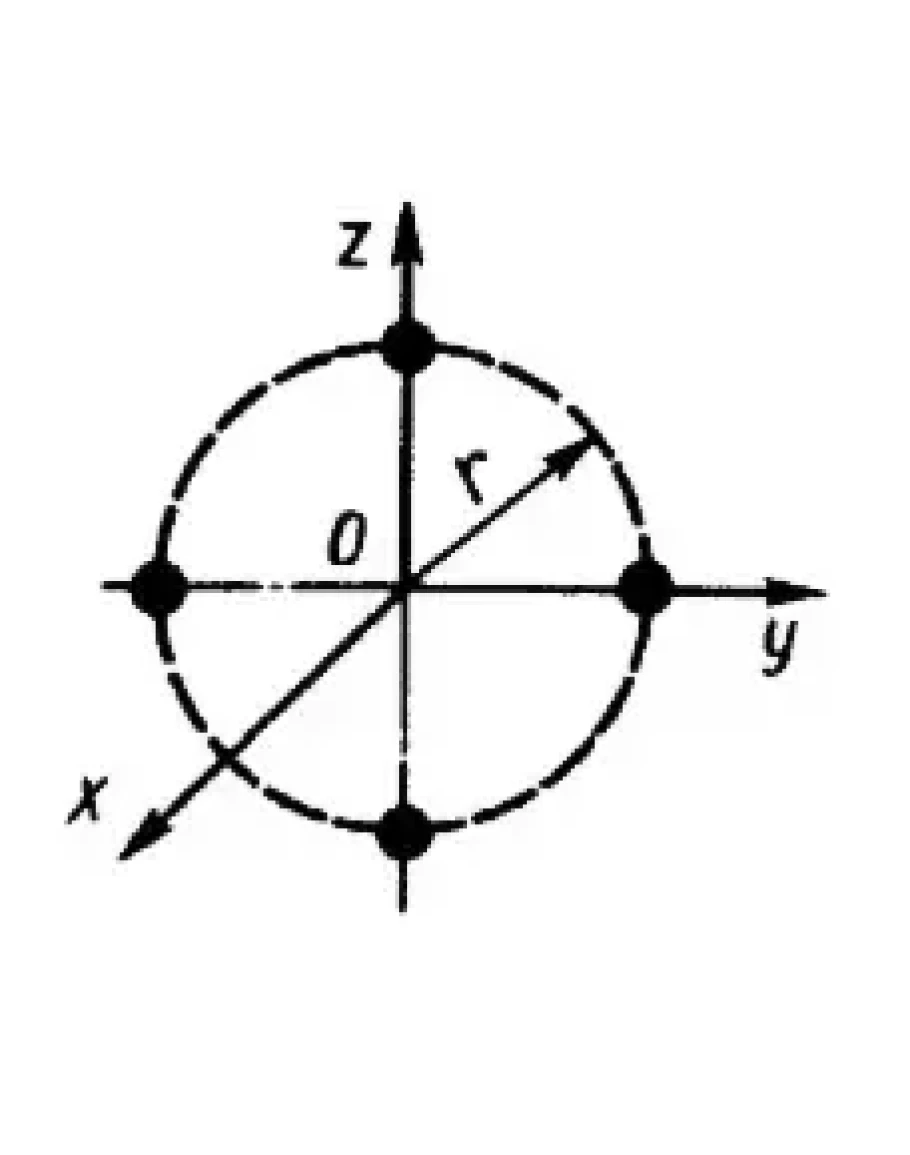 Определить момент инерции относительно плоскости Оху механической системы, состоящей из четырех одинаковых материальных точек, если масса каждой точки m = 1,5 кг, а радиус r = 0,4 м. (Ответ 0,48)