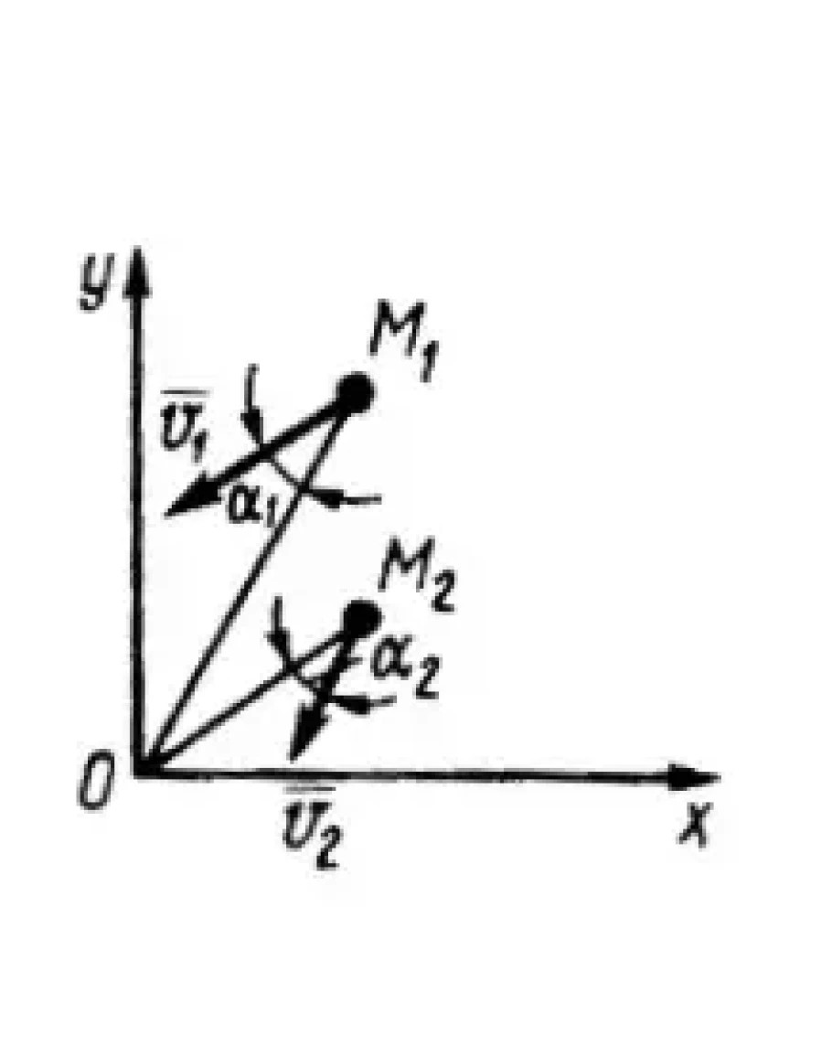 В плоскости Оху движутся материальные точки М1 и М2, массы которых m1 = m2 = 1